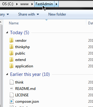 下载 FastAdmin 1 并解压到 C:/www/FastAdmin 目录