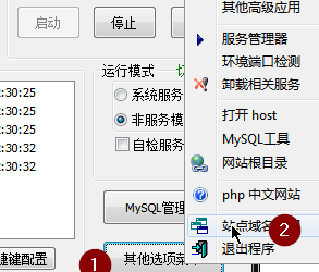 点击 phpStudy 界面 其他菜单 -> 站点域名管理