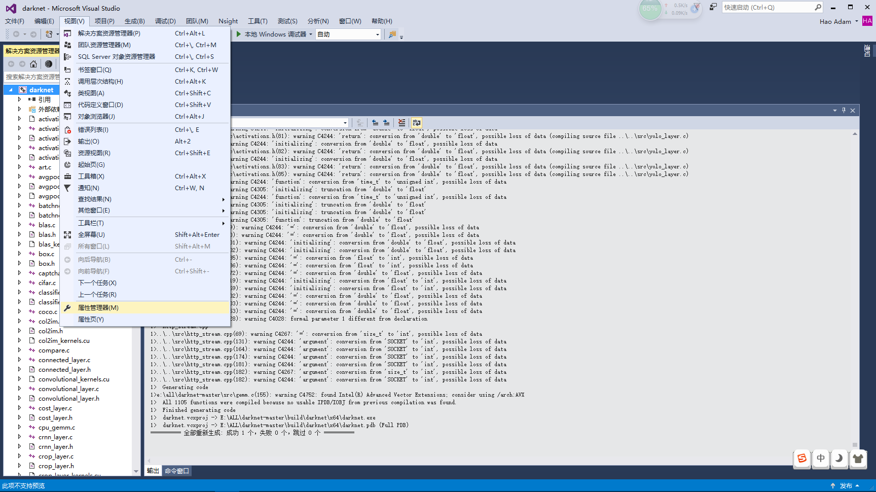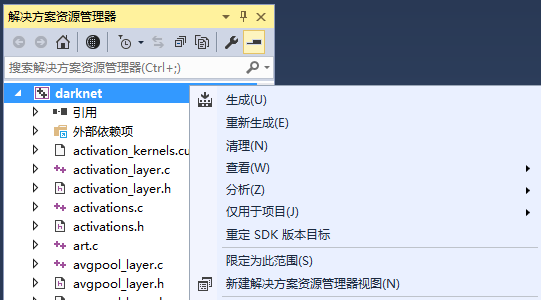右键解决资源管理器的darknet,然后点击生成