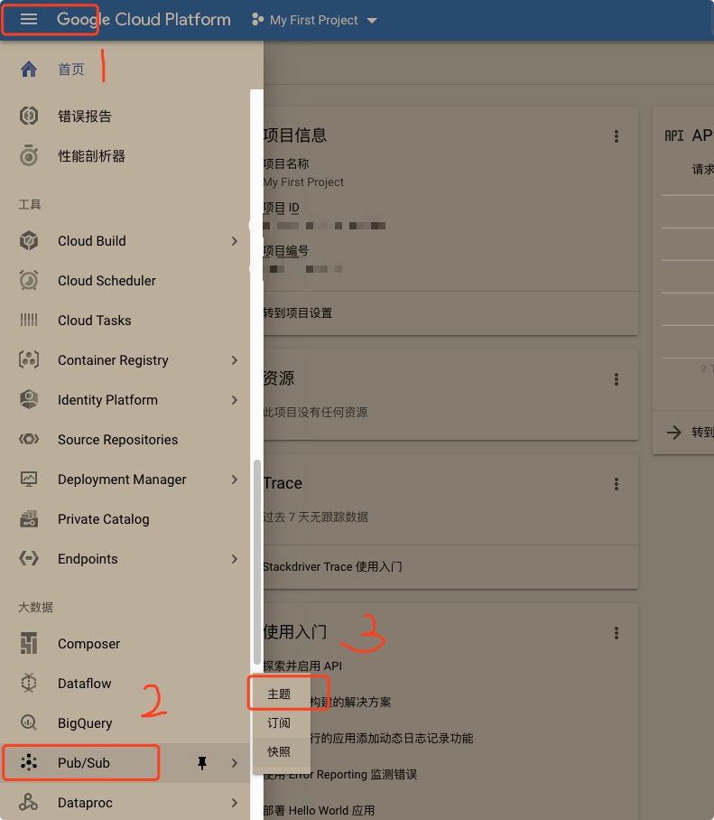 - 1. 前往 Google Cloud Platform (GCP) 创建 Pub/Sub 项目: