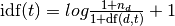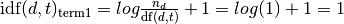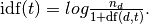 词语频率(词语在给定文档中出现的次数)与idf相乘,idf组件计算为: