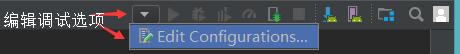 (4) 对调试选项进行编辑,点击 Android Studio 界面上的图示按钮,选择 Edit Configurations。