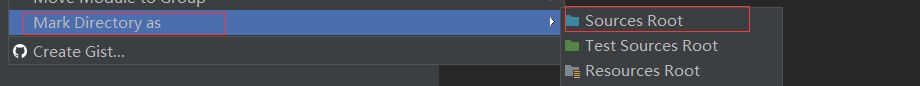 (2) 选中项目目录,右键 -> Mark Directory as -> Sources root.