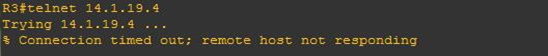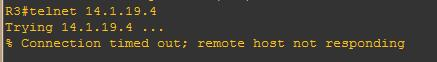 R1(config)#access-list 110 deny tcp 172.16.19.0 0.0.0.255 host 192.168.19.3 eq 23