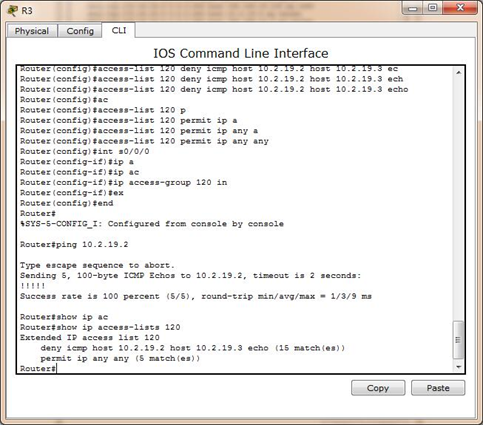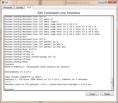 R3(config)#access-list 120 deny icmp host 10.2.19.2 host 10.2.19.3 echo