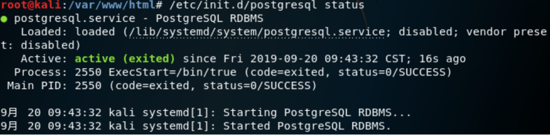 5.开启postgresql服务,postgresql的端口号为5432,开启MSF(msfconsole的缩写)