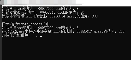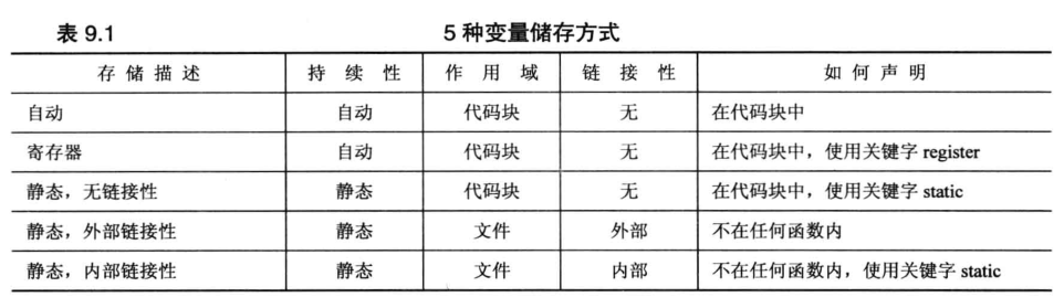 中访问,用static声明)。这三种链接性的变量在整个程序执行期间都存在,