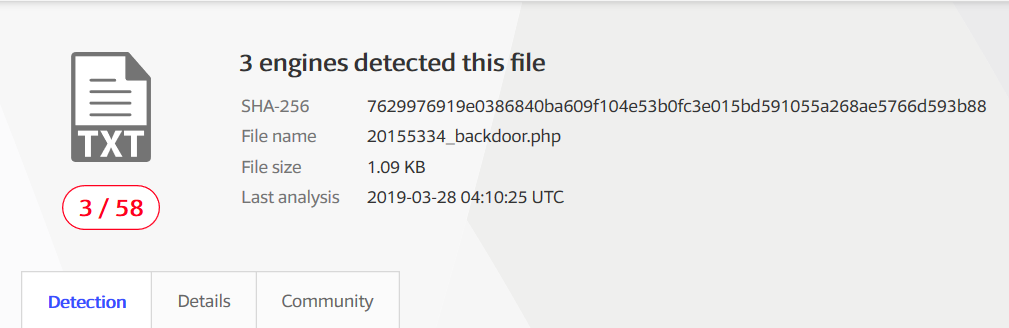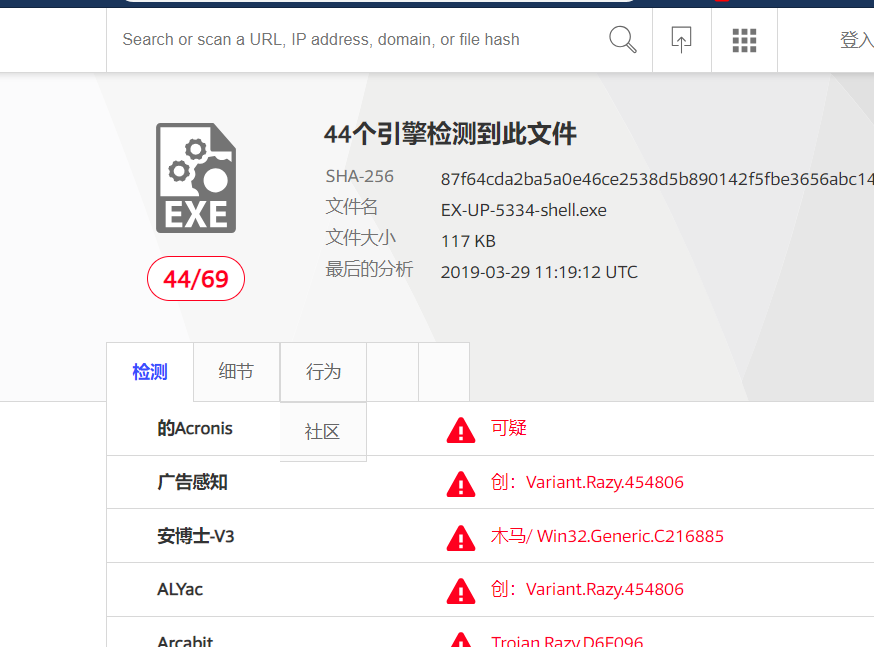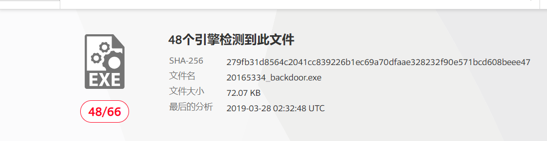 20165334_backdoor.exe利用VirusTotal网站进行扫描检测。