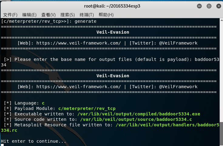 generate生成文件,接着输入你想要playload的名字:baddoor5334