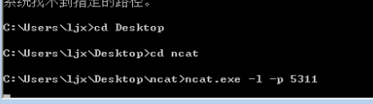 - 使用ncat.exe程序打开监听 ncat.exe -l -p 5311