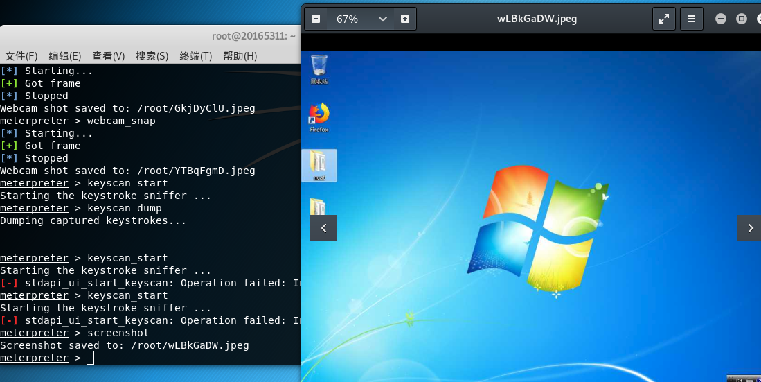 任务四:使用MSF meterpreter(或其他软件)生成获取目标主机音频、摄像头、击键记录等内容,并尝试提权