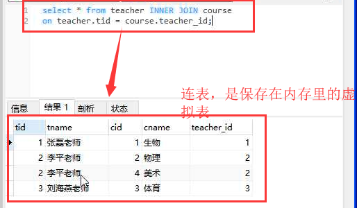 select * from teacher inner join course on teacher.tid = course.teacher_id;