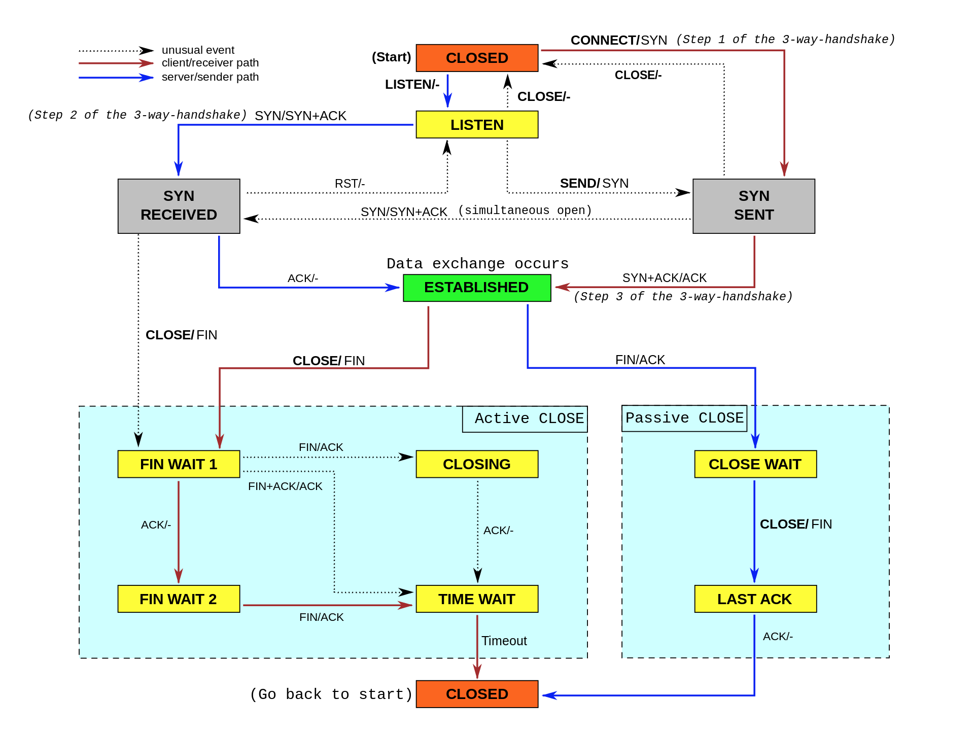 TCP 提供了面向连接的可靠传输服务。要优化 TCP,我们首先要掌握 TCP 协议的基本原理,比如流量控制、慢启动、拥塞避免、延迟确认以及状态流图(如下图所示)等