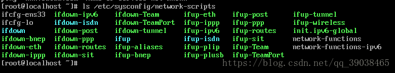 其次,输入 ls /etc/sysconfig/network-scripts命令(注意ls与/etc之间有空格),找到ifcfg-ens33这个文件,可能你的有些不同,但应该都是ifcfg打头的,并且都是刚生成不久。如图: