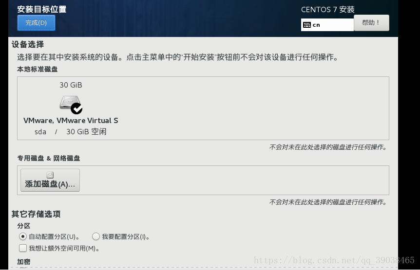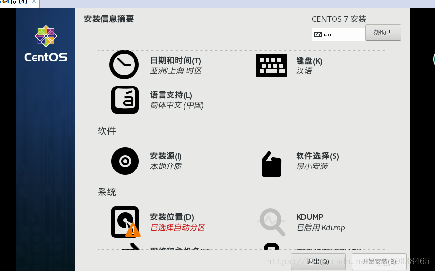 基本保持默认就可以,其中“软件选择”最小安装,也可以根据需求安装其他软件。然后点击“安装位置”,如下所示: