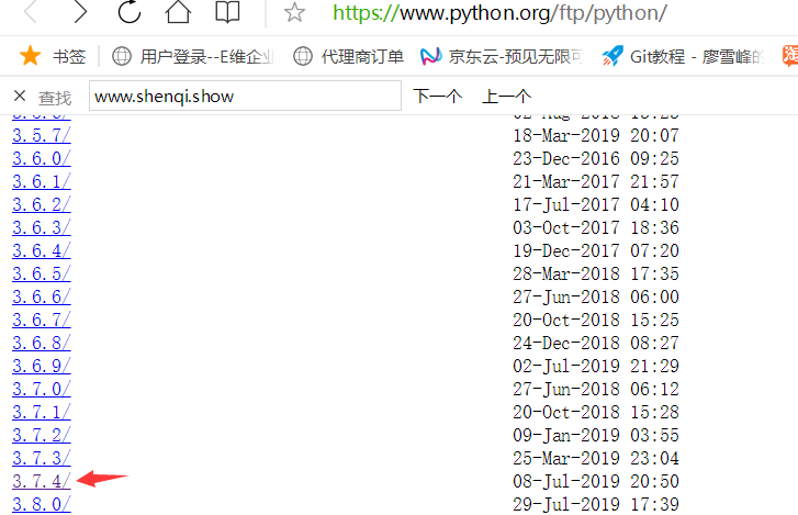 2、去官网寻找要下载的PYTHON 包。我选择的是3.7.4