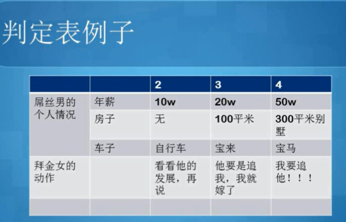 5)把判定表的每一列作为依据拿出来设计测试用例
