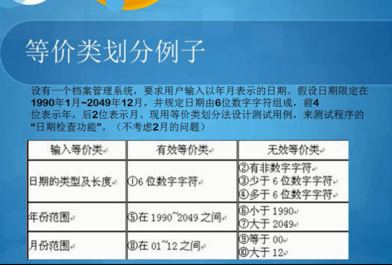 3)若规定了输入数据必须遵循的原则,则可分为一个有效等价类和若干个无效等价类