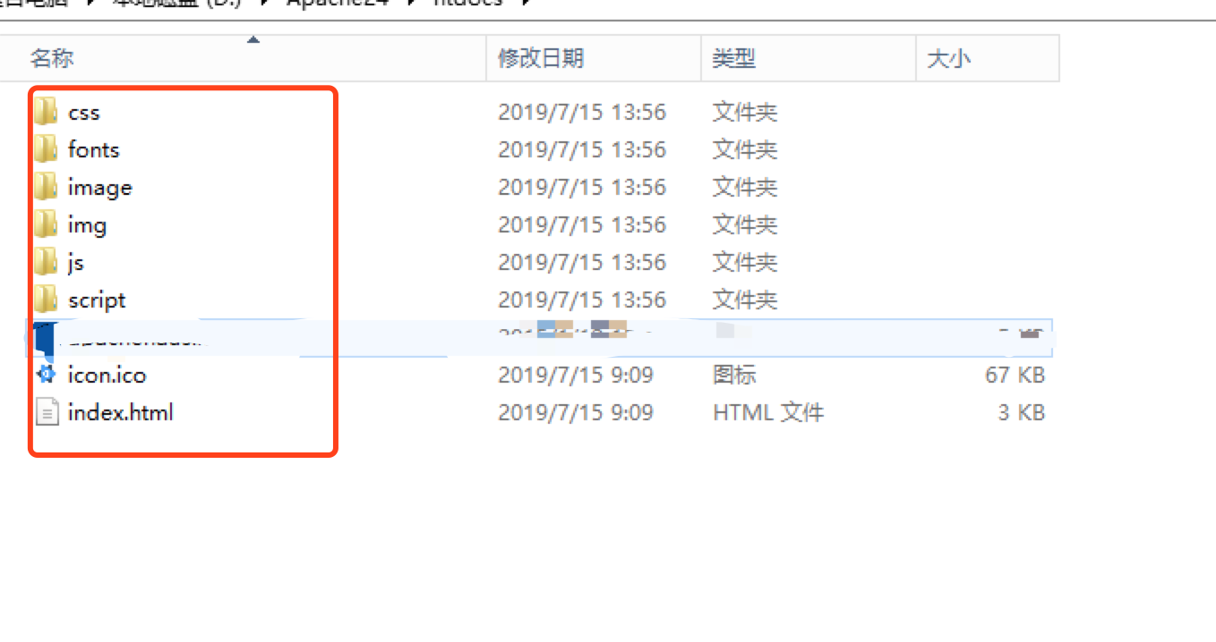 拷贝dist下的文件,到Apache-htdocs中,如图所示: