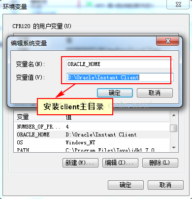 ORACLE_HOME主目录可以在操作系统中的环境变量中配置(尽量不要采用此办法)。