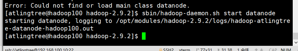 starting datanode, logging to /opt/modules/hadoop-2.9.2/logs/hadoop-atlingtree-datanode-hadoop100.out