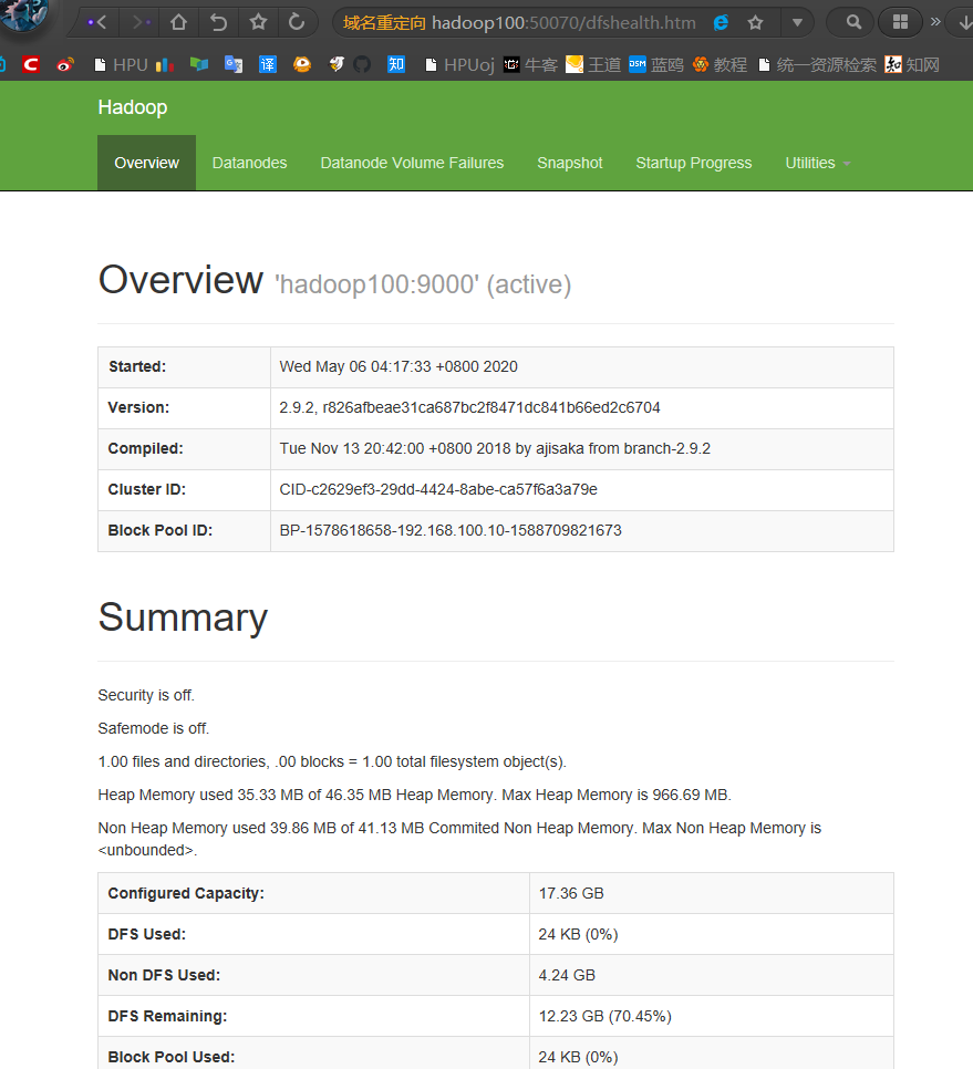 打开浏览器输入 http://hadoop101:50070/