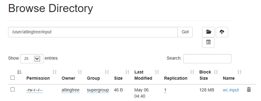 -rw-r--r-- 1 atlingtree supergroup 46 2020-05-05 13:40 /user/atlingtree/input/wc.input