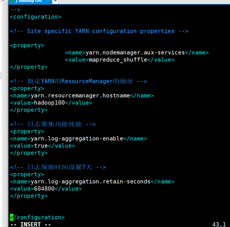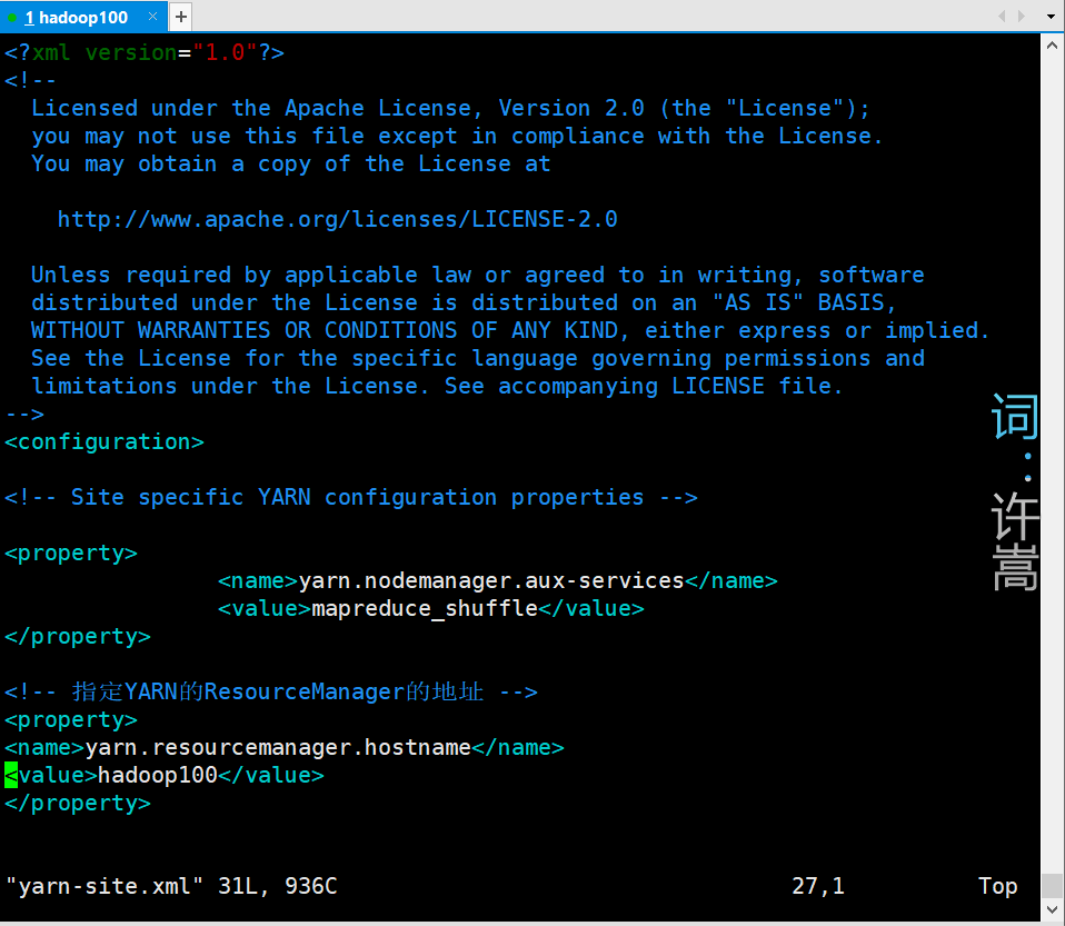 [atlingtree@hadoop100 hadoop]$ vim yarn-site.xml