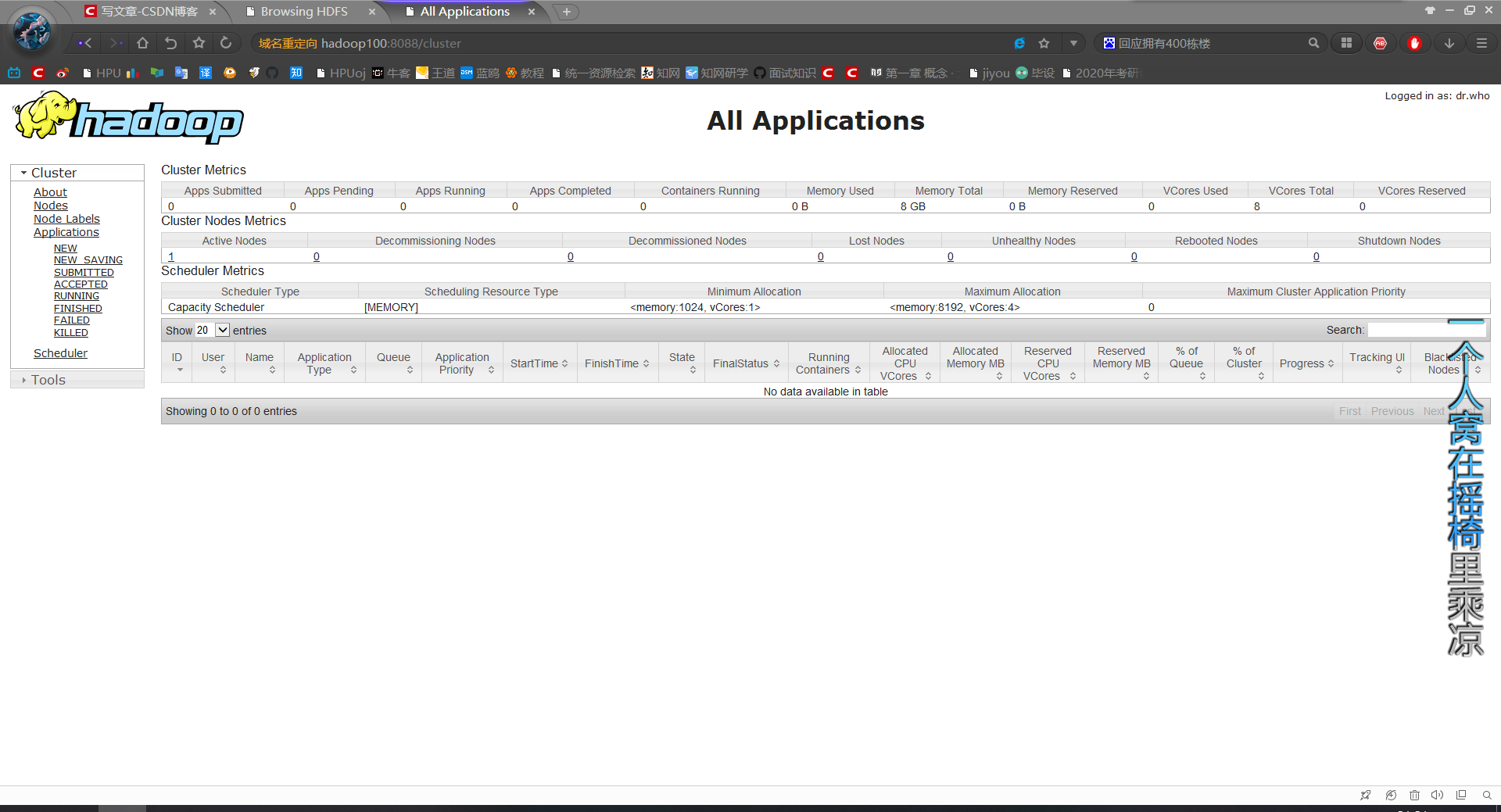 在浏览器中输入: http://hadoop100:8088