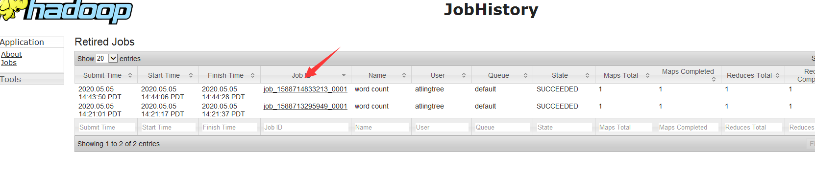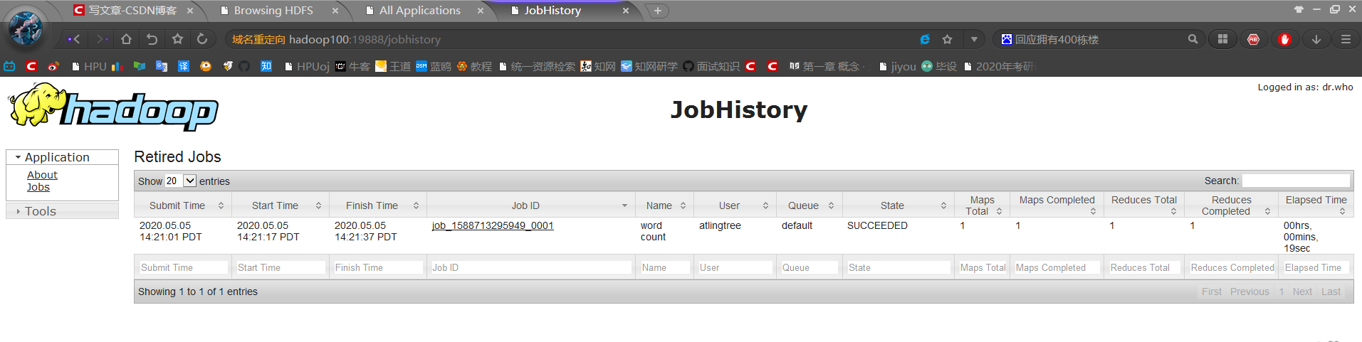 web端查看 http://hadoop100:19888