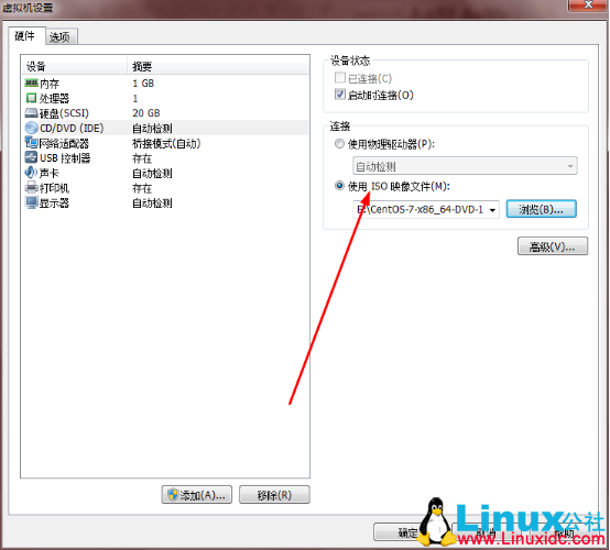 16.选择“使用ISO映像文件”,点击“浏览”,找到你安装盘所在位置: