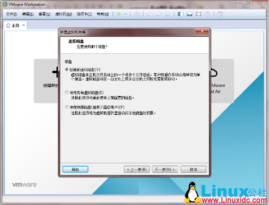 12.“磁盘”选择“创建新虚拟磁盘”