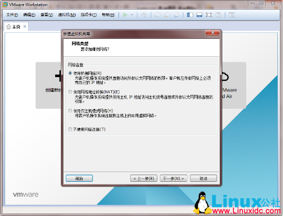 9.“网络类型”选择“使用桥接网络”: