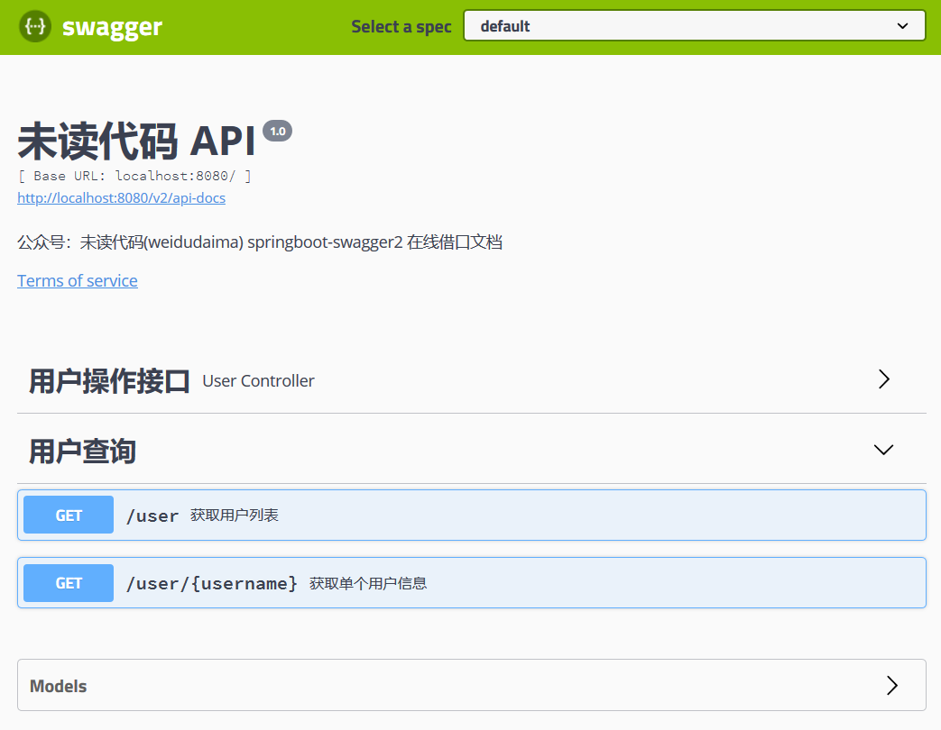 也可以看到用户查询的两个方法会归到了一起,原因就是这两个方法的注解上使用相同的 tag 属性。