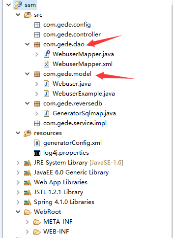 24 <javaModelGenerator targetPackage="com.gede.model" targetProject=".\src">