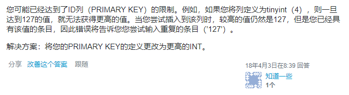 出现这个就代表添加的数据主键有重复