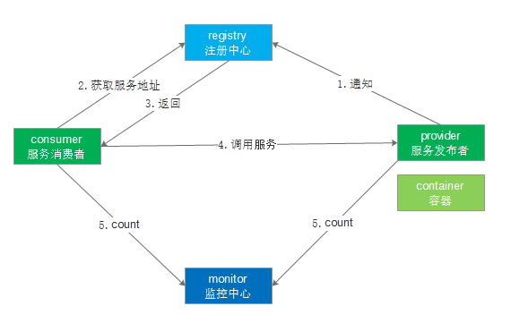Provider提供服务,并上传到Register,Monitor可以对上传上来的服务进行管理,Consumer可以通过Register拿到Provider提供的服务的相关信息,进行消费