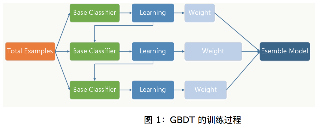首先明确gbdt也属于boosting,但他和adboost不同,他不是每次训练部门数据,而是整个数据集(如上图所示)。那他为什么又属于boosting呢?个人认为:1.gdbt也是串行的 2.每次迭代需要上次的返回结果,这是这里的返回结果和adboost不同。(之前认为总分类器是将每轮训练得到的弱分类器加权求和得到的,但bagging是vote或者求平均。但是后来发现,bagging里面vote也可以通过软vote获得加权和)