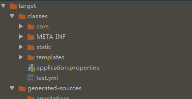 重新构建后,我新建一个class ,这里需要说明的就是 @ProtertySource 指定yml的路径 需要注意是的 classpath 这个指向的地址,是打包后的目录,调试的时候肯定找不到对应路径目录的文件需要自己配置下,否则就放在下图的目录结构