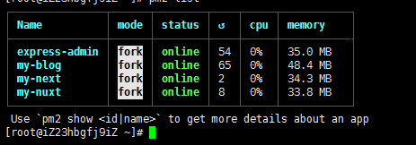 <p><code>使用pm2时,把两个部署命令合成一个更方便!</code>执行完pm2的启动命令后,我们用<code> pm2 list </code>查看一下进程列表,我截一下我个人服务器的pm2列表:</p>
