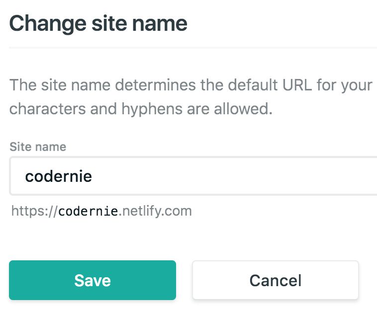 首先,点击上图中 Site settings 按钮,然后在下方点击 Change site name 按钮,然后在弹出框中输入自己需要更改的前缀名,点击保存即可,如下图所示: