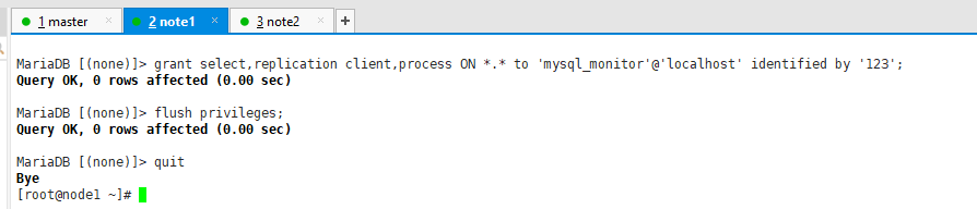 MariaDB [(none)]> grant select,replication client,process ON *.* to 'mysql_monitor'@'localhost' identified by '123';