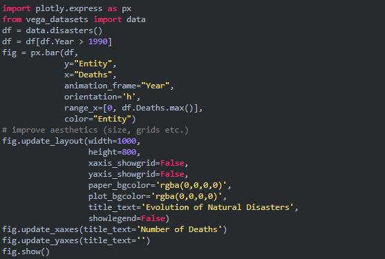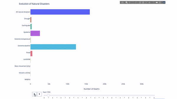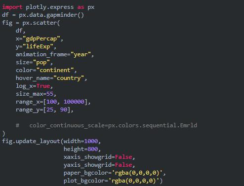 在研究这个或那个指标的演变时,我们常涉及到时间数据。Plotly 动画工具仅需一行代码就能让人观看数据随时间的变化情况,如下图所示: