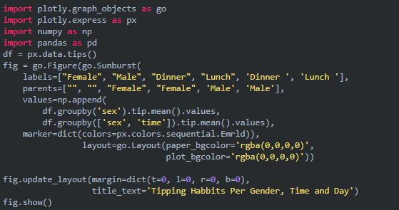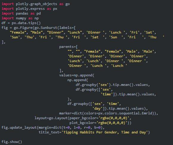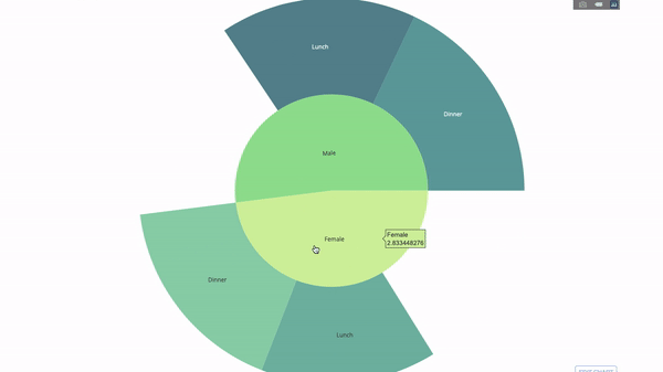 太阳图(sunburst chart)是一种可视化 group by 语句的好方法。如果你想通过一个或多个类别变量来分解一个给定的量,那就用太阳图吧。