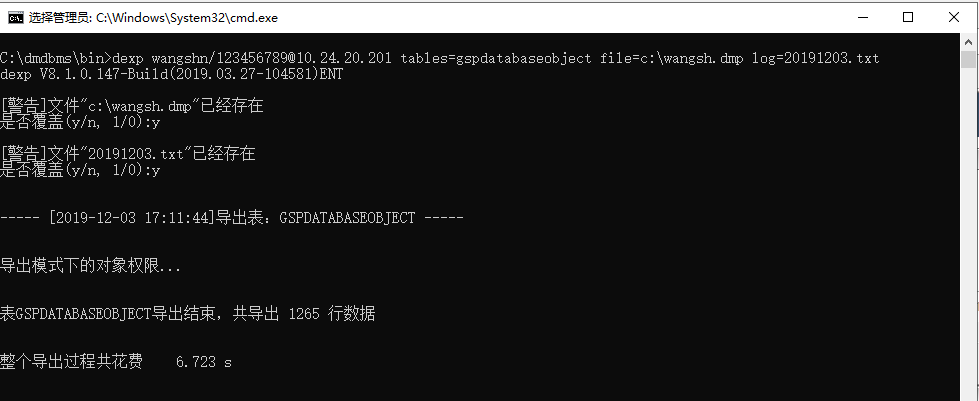 dexp wangshn/123456789@10.24.20.201 tables=gspdatabaseobject file=c:\wangsh.dmp log=20191203.tx