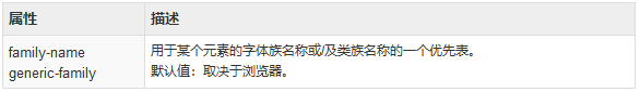 font-family 可以把多个字体名称作为一个“回退”系统来保存。如果浏览器不支持第一个字体,则会尝试下一个。也就是说,font-family 属性的值是用于某个元素的字体族名称或/及类族名称的一个优先表。浏览器会使用它可识别的第一个值。