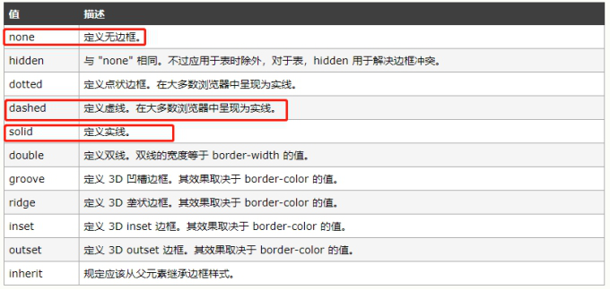语法:div{border: 边框粗细border-width 边框样式border-style 边框颜色border-color}