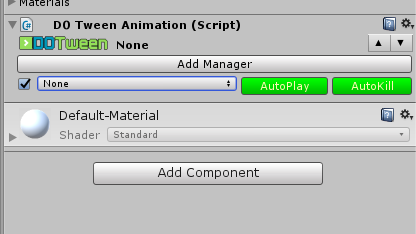 1.添加组件:DoTweenAnimation[作用:做补间动画]